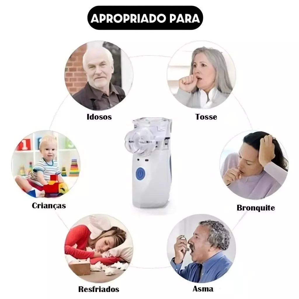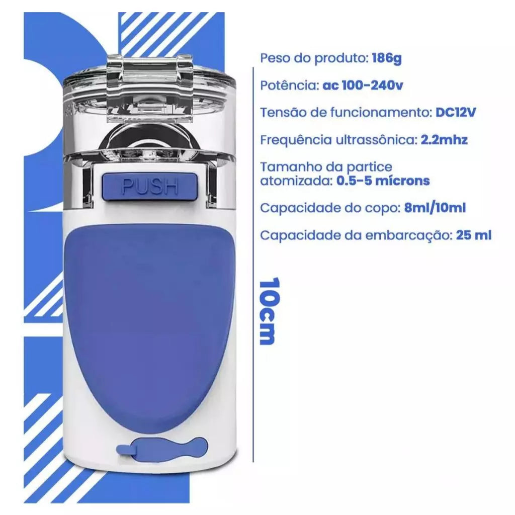 | Nome do Produto | Nebulizador Ultrassônico Inalador Portátil a Pilha e Bivolt |