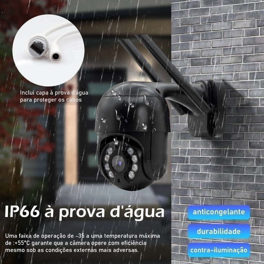 Seja dia ou noite, sol ou chuva, ela entrega imagens nítidas e monitoramento eficiente, com visão noturna inteligente , rotação panorâmica e proteção IP67 à prova d'água , garantindo desempenho total mesmo nas condições mais extremas.
