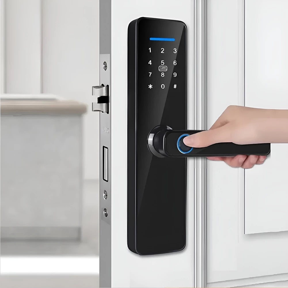 A Fechadura Eletrônica Digital 4 em 1 combina biometria de alta precisão, senha numérica, chave física, tag de acesso e controle via App Bluetooth, oferecendo liberdade para escolher como entrar com máxima comodidade e confiabilidade.